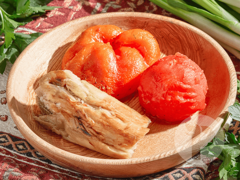 В состав набора входит: запеченный баклажан 1 порция, запеченный перец 1 шт, запеченный помидор 1 шт.