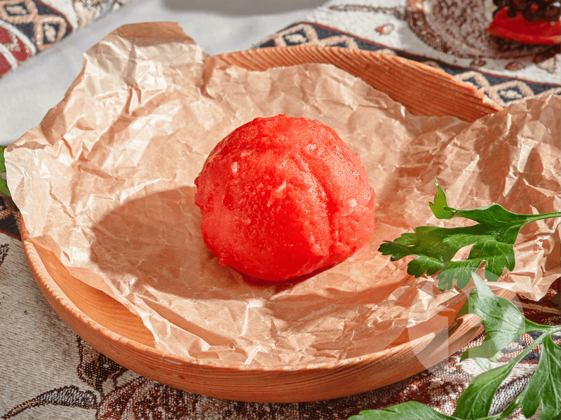 В состав блюда входит: один целый помидор, запеченный на мангале.