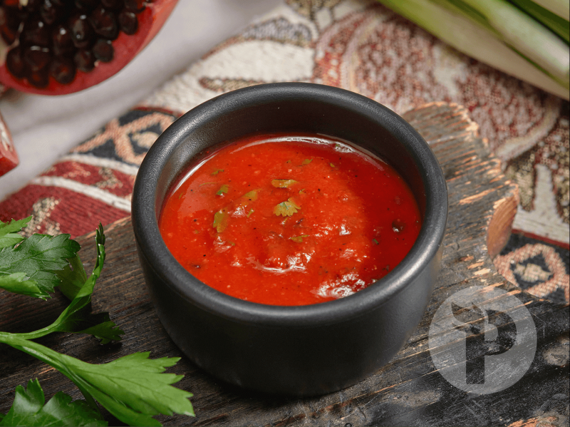 Состав: паста томатная, соль, сахар, перец черный молотый, паприка, чеснок сушеный, зира, специя лук сушеный, кориандр, укроп, базилик, кинза.