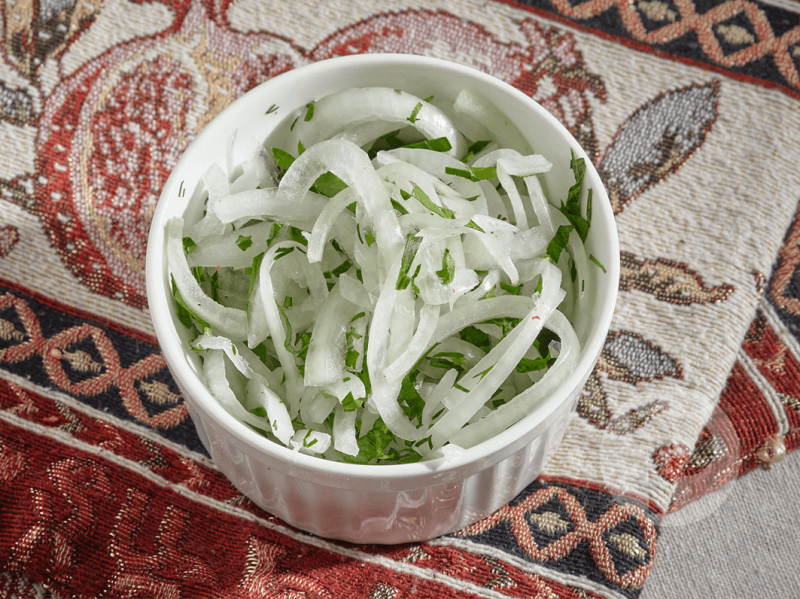 В состав блюда входит: лук маринованный, зелень.